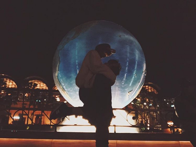 ディズニーで地球儀の写真とったらカップルがキスしてる写真が撮れちゃった Yahoo 知恵袋